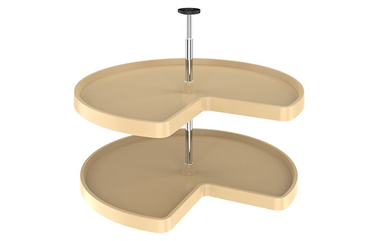 • 20" Almond Plastic 2 Shelf D-Shape Dependent Lazy Susan